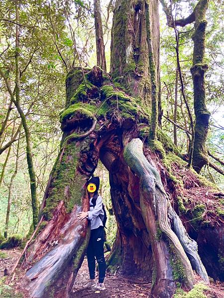 再與另棵神木相遇 把自己塞在中間 擁抱神木一下